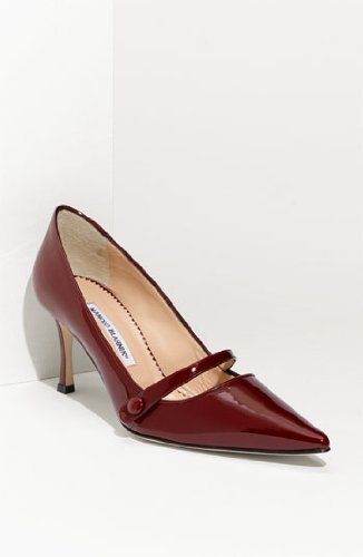 A chic pointed-toe pump is grounded by a curvy wrapped heel and fashioned with a decorative mary jane strap. Color(s): black patent, bordeaux. Brand: MANOLO BLAHNIK. Style Name: Manolo Blahnik 'Mladari' Mary Jane Pump. Style Number: 381944. Manufacturer part number MLADARI